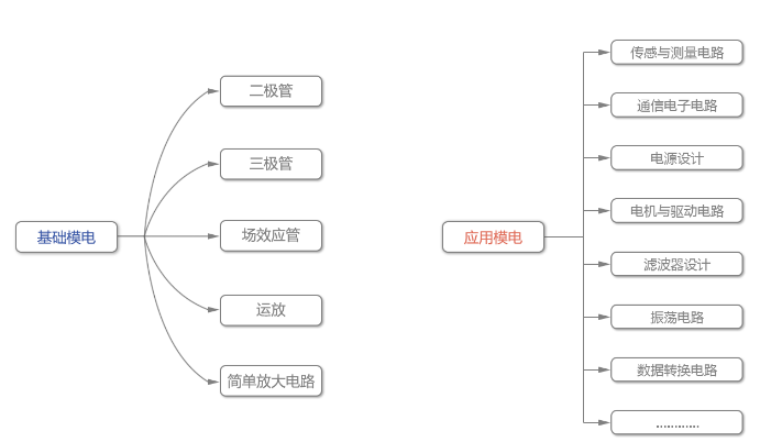 基础模电,只要熟练掌握好:二极管、三极管、场效应管、运放这4种元器件的特性,就可以了。每一种元器件都有几种固定用法的基础电路,总共加起来也就20几个基础电路,这个一定要掌握好。之后的多级放大电路,无非就是前面这20几种基础电路中取出几个的组合,顺便再兼顾一下其频率适用范围。