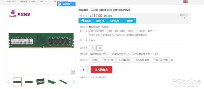 2、国产紫光DDR4内存终于上市 8GB只要219性价比突出