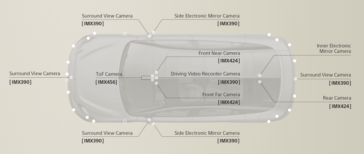 Vison-S上的部分传感器 / Sony